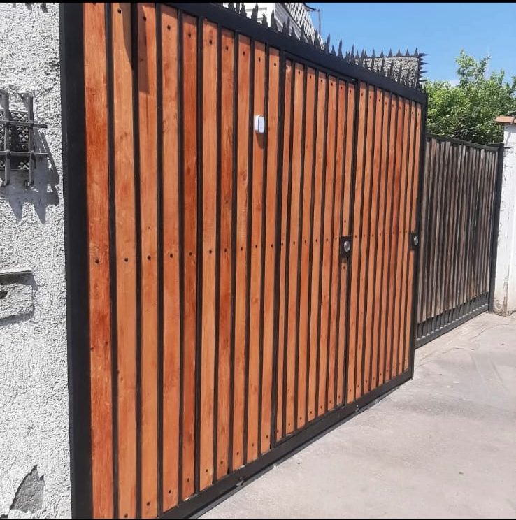 Cambio de portón batiente a portón corredera con madera puerta en portón